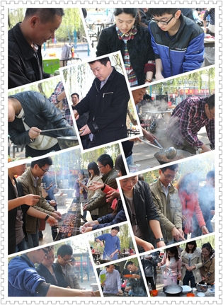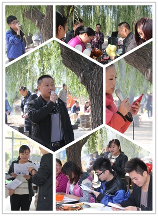 這邊美食還在回味中,那邊的節(jié)目表演已經(jīng)開場了,銷售一部超越組的帥小伙云卿一亮相就震撼全場,楊宗緯的《洋蔥》模仿的象模象樣。歌聲蕩漾,婉轉(zhuǎn)飛揚,美食正在繼續(xù)中,廚藝比賽一結(jié)束,時鐘已嗒嗒地跑到了中午11:00整,大規(guī)模的團隊宴席就正式開始啦。小組成員們馬不停蹄,燒烤,爆炒,涼調(diào),拼盤,個個都使出拿手絕活,大有一種不把現(xiàn)場“熱翻天就不罷休“的勢頭,除夕年夜飯的感覺盡然給烘托了出來,空氣里滿是讓人味蕾開放的各色香味兒。上菜了,上菜了,一道道精致的菜肴象一件件精美的藝術(shù)品, 成員們個個大快朵頤,觥籌交錯,美食,歌聲,小品,歡笑,各種逗趣兒,這溫馨的現(xiàn)場時光,成員們個個都忘記了疲倦,忘記了年齡,忘記了曾經(jīng)的挫折,忘記了生活路上太多太多的沉重,取而代之的是激情,是堅韌,是快樂,是勇敢,是振奮,是沖刺,是自信,是對未來美好的憧憬和向往………