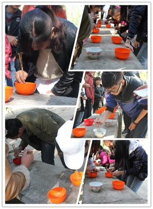 本次活動主要目的之一就是團隊協(xié)作,所以“玩游戲贏食材,美食廚藝大比拼”特別應(yīng)景兒。選號、分組、游戲規(guī)則說明,各小組推薦參賽選手,挽袖子,上場,預(yù)備,開始……..好一個漂亮流暢的進程動作,“碗中運珠”的游戲一開始就吸引了現(xiàn)場眾多人的圍觀,歡笑聲,喝彩聲響成一片,參賽選手個個都不敢懈怠,雙目圓睜,可是小小玻璃珠子就是調(diào)皮,它們不是不上筷子,就是跳到碗外邊去了,甚至進了碗又神奇般地再次跳了出來。感嘆聲、歡笑聲頓時響成一片。“不行,有人作弊,這顆珠子不能算”。評委桂娟的眼睛何其明亮,現(xiàn)場一次沸騰起來,歡樂也不能破壞游戲規(guī)則,經(jīng)過緊張激烈的角逐,第一名為:第六組,成績?yōu)?6顆;第二名為:第二組,成績?yōu)?6顆;第三名為:第三組,成績?yōu)?2顆;第四名為: 第五組,成績?yōu)?1顆;第五名為:第四組,成績?yōu)?0顆;第六名為:第一組 ,成績?yōu)? 顆。