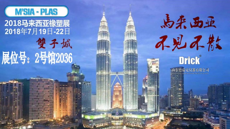 2018年馬來西亞國際塑膠展M’SIA-PLAS 2018于今日在馬來西亞吉隆坡太子世界貿(mào)易中心盛大開幕!山東德瑞克儀器有限公司為了提高自身實力,增強企業(yè)競爭力應(yīng)邀前來!我們在2號館2036展位等您!本次展會由我們外貿(mào)部屈總帶隊,歡迎國內(nèi)外客戶蒞臨指導(dǎo)!