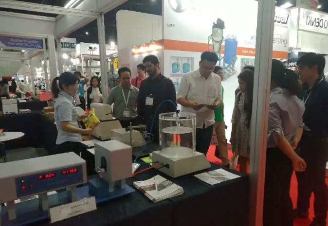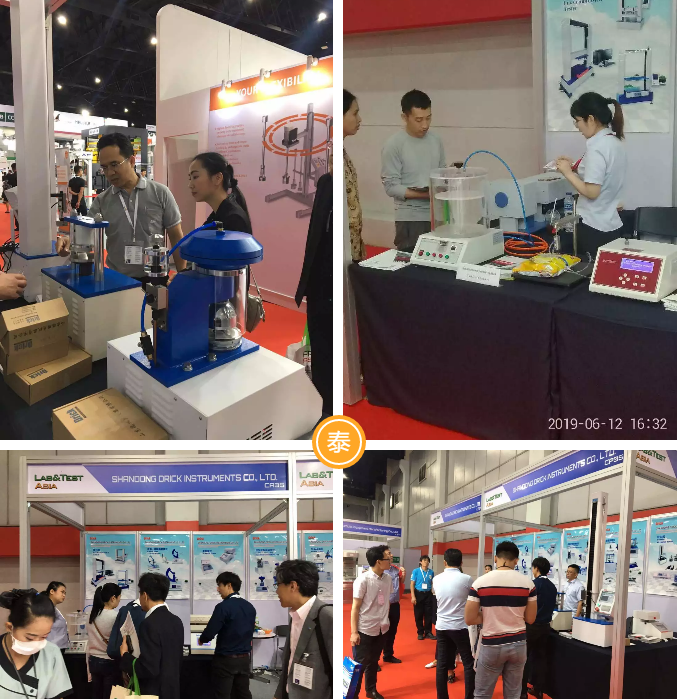 上海展我們展出的產(chǎn)品有:初粘性測試儀、持粘性測試儀、臥式電子拉力試驗機、電子拉力試驗機、密封試驗儀、雙五點熱封儀、摩擦系數(shù)、 薄膜測厚儀、氣相色譜儀、恒溫恒濕箱、透光率霧度測試儀、薄膜熱收縮性能測試儀 、薄膜擺錘沖擊試驗儀、電子撕裂度測試儀、落鏢沖擊試驗儀;泰國曼谷展我們攜帶的產(chǎn)品有:拉力機,熱封儀,泄漏與密封強度測試儀,壓縮試驗儀 耐破度儀,柔軟度儀。以上產(chǎn)品的展出,收獲了許多客戶的青睞和關(guān)注,更有幾批客戶現(xiàn)場簽下訂單。