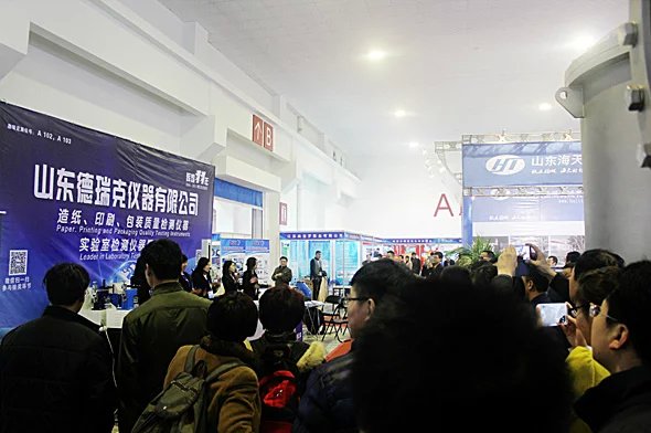 山東(國際)制漿造紙技術(shù)及裝備展覽會已成功舉辦十年,展會展出面積12000平方米,參展商約400余家,專業(yè)觀眾達(dá)15000余人,山東德瑞克攜2015新上市升級版產(chǎn)品亮相本次展會,其中DRK101A拉力試驗機(jī)采用進(jìn)口直流伺服電機(jī)和滾珠絲桿構(gòu)造性能更穩(wěn)定, 中英文自由切換配合智能化 觸摸屏操作更便捷,且實時顯示曲線和數(shù)據(jù)。此外,平滑度儀,耐破度儀,耐折度儀,撕裂度儀,紙箱抗壓機(jī)等十余種新型檢測儀器也是山東德瑞克本次展會展出的得意之作,美觀,穩(wěn)定,智能化,適中的價格,深得與會客戶的一致認(rèn)可與好評。