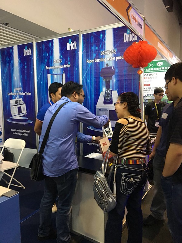 展會上我們向廣大展商和觀眾展示了我們的主打產(chǎn)品:DRK127摩擦系數(shù)儀、DRK123抗壓機(jī)、DRK101萬能拉力機(jī)、DRK109耐破度儀、DRK113壓縮儀、DRK133熱封儀等。產(chǎn)品的實用性和性價比,吸引了一波又一波的參觀人員駐足了解。
